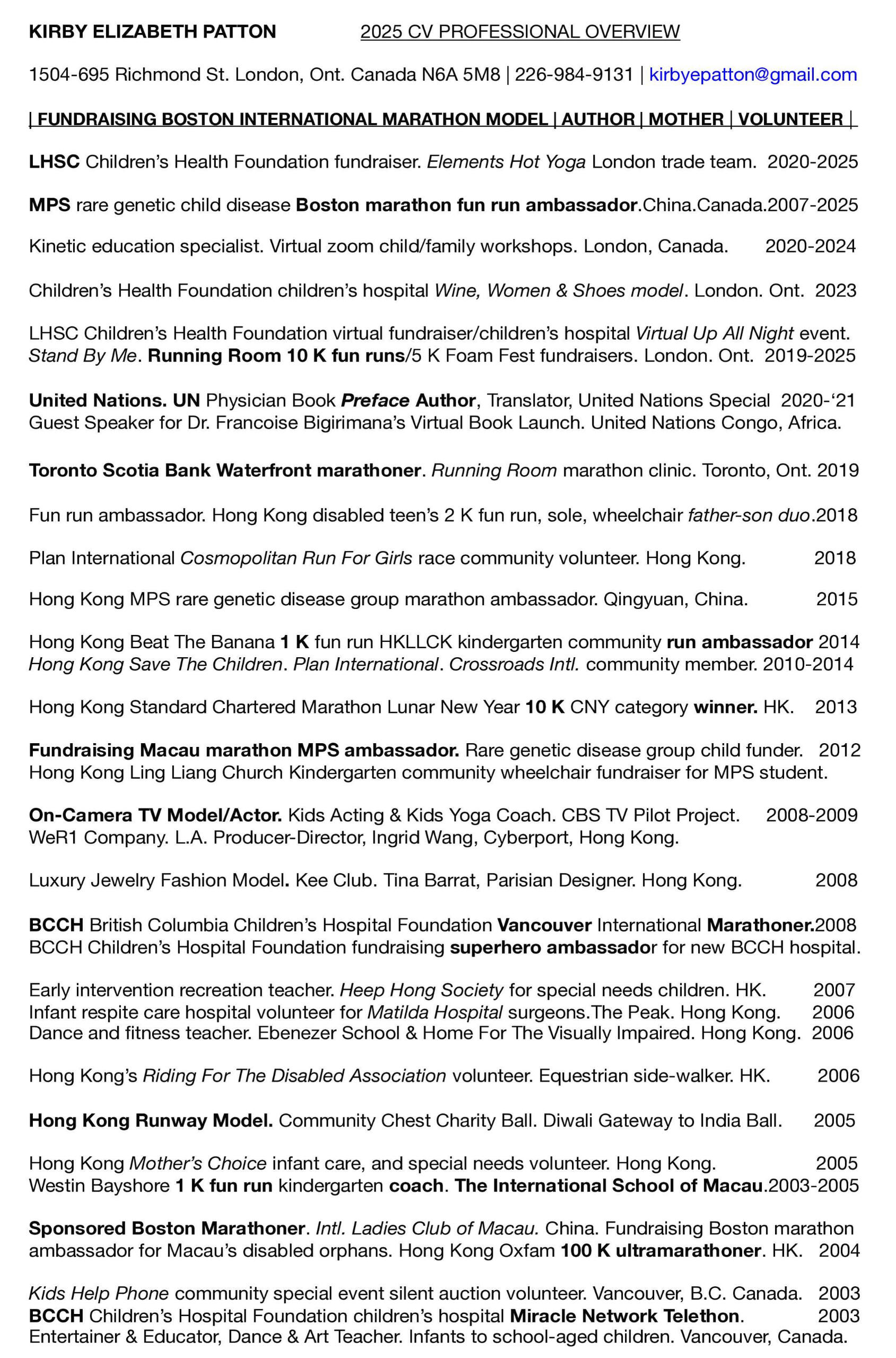 What distance would you go for a loved one?The distance you choose makes ALL the difference!The distance you go makes a world of difference for a loved one, friend or stranger is what I know for MPS super kids. Each of us can make a difference by going the distance to simply show up and champion ONE child by 1 donation! It may be hard to imagine that by ONE of us going the distance for another ONE, we make a life-altering difference! How can we know by going the distance with $1.00 dollar, it makes a world of difference for ONE by our actions? We can trust a "walk by faith, not by sight.” 2 Corinthians 5:7. This is the precise mindset MPS super kids live by! Our actions make a difference by faith-filled MOVES for another ONE who sees someone cares to show up for ONE.Imagine, for a moment, you land on another continent meeting families whose tots, teens, and adult children all have miniature, physical stature whose loving demeanor transports you into an unfamiliar, colorful world that is reminiscent of feeling you’ve entered the musical film The Wizard of Oz where Dorothy clicks her mystical, red, ruby slippers 3 x. Such is my real-life, magical adventure tale that took me from Canada for meeting sweet Hong Kong MPS warriors.My heart dashed ahead of my stride as I walked through the door of the recreation center where precious children and families of the Hong Kong MPS Group came into view who I offered educational activities to in my volunteerism. In an instant, my heart melted and my eyes tearfully flooded as I was gently greeted by a roomful of families whose children’s bright smiles are etched on my heart to this day! My MPS Love Story is about Hong Kong’s brave MPS children and families whose lives are consumed by HOPE as MPS children battle to outrun rare genetic diseases.I’ll go the 8 K distance on May 4 for their MPS 20th anniversary on May 1st to honor each worthy child’s miracles! HKMPS super kids are real-life, ultramarathon, medal winners with giant dreams who are genuinely mesmerizing!May 4, I'll step into my favorite Mizuno runners in my passionate role as a Boston marathoner, 100K Oxfam ultra marathoner and fun run fundraising ambassador to celebrate the victories of inspirational MPS children and families!The distance each one of us goes for another ONE makes ALL the difference no matter how far the distance traveled because it’s by showing up that we mark the start of another one’s visibility to matter by our compassionate care.Hong Kong’s honorable MPS Group tots, teens, adults, and their families, who I adore and admire over 18 years, are lionhearted champions some of whom LOVE 2 Run measurable, marathon fun run distances who are half my size!Each ONE! Each life. Each child. Each teen. Each family. Each community member is ONE valiant distance-maker! “A Win by ONE thriving MPS soul makes 1 significant difference to empower WINS for ALL sporting global smiles.”Canada's nation's largest BMO Vancouver international marathon, 1.2 marathon and 8K sold out long ago by a world of “distance-makers” who will walk, wheel, run and cheer on people from all nations for each living ONE’s best life! Each walker, wheeler, runner and supporter is ONE who is going the distance for their own reason for global impact as goodwill ambassadors for a world of children, families & people to celebrate each ONE’s impact helping us ALL.In my privileged 18 year rapport with enchanting HKMPS children and families who are a beacon of peace to people in all corners of the world, my message is, "an international workout is external beauty, run with heart!”- Kirby Patton.My commitment May 4 is to walk-run 8 K honoring MPS super kids yet speed’s not part of my 8 K marathon mission.My invitation to YOU is to extend your helping hand as ONE distance-maker making 1 difference matter by joining me to celebrate our world’s radiant MPS superheroes by your move to “Champion ONE child by $1.00 donations!”It’s a lifetime privilege to step out on behalf of Hong Kong’s beloved MPS super kids and families for a first time in Canada for a 20th anniversary tribute to them all and celebrate their 2025 MPS anniversary feats and living legacy!“Nations of BMO Vancouver marathoners and fun run athletes are distance-makers; ONES who live out their dreams by the imprint of their soul's footprints!”-Kirby Patton.OPRAH, in her wisdom is life’s silver lining who reminds us of our BIG picture! 1 life is marked by 1 GIANT reason to go the distance! Helping out shows ALL, each ONE counts!How about jumping into “fun fitness!” Join my 2025 Kirby Kid Race Challenge for making your 1 MOVE For ONE Donation count by funding fearless MPS kids in your kind Kirby Kid Race 1$ donations for my MPS 8 K distance! Guess what experience fills me up to an unimaginable NEXT-LEVEL soul-opening state?Your 1 MOVE for MPS kids!Go walk, wheel and run your local or international marathon fun run distance! You may start to feel in your family fun run an inner power, if you feel the way I do, for helping move mountains for yourself and another ONE! It's pivotal to what motivates me to return to the “ZONE” of the BMO Vancouver International Marathon in the city where I ran my 1st fun run pushing my wheelchair-bound superhero Vancouver’s Sun Run 10 K distance in 1999.As a Boston International Marathoner late bloomer, in my 40’s, how I wish my childhood was laced with marathon family fun runs for enjoying great health/quality family time/new friends through meaningful philanthropic footwork!When I laid my eyes upon Hong Kong’s MPS children's hospital’s youngest newborn patient, merely weeks old, I was committed to help RUN 2 Fund her non-government funded, life-saving medication to give HOPE to 1 MPS life.Dec. 2, 2007, I ran the Macau international marathon for ONE unstoppable MPS INFANT and again, Dec. 2, 2012.ONE, fearless, sensational Hong Kong MPS super baby ambassador is now 18 years old!